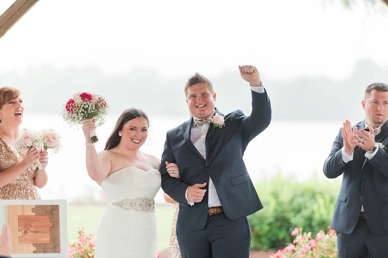 The beauty of Cousiac Manor is there is a covered area to have a plan B ceremony!! Guests popped open umbrellas and they did it! THEY WERE MAARRRRIIIIIED! <3