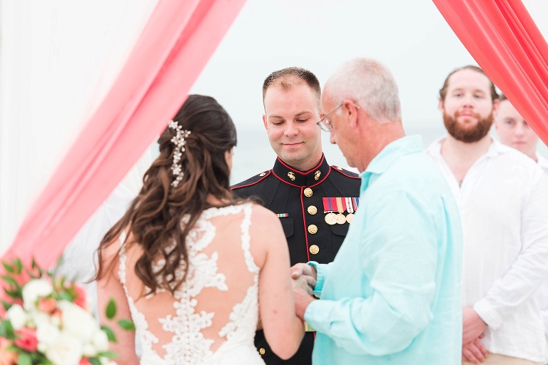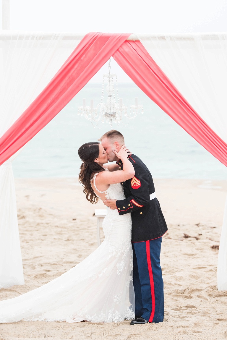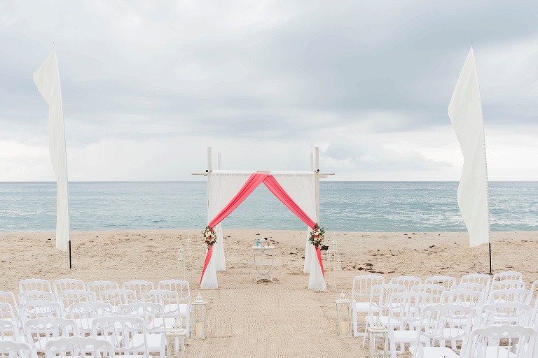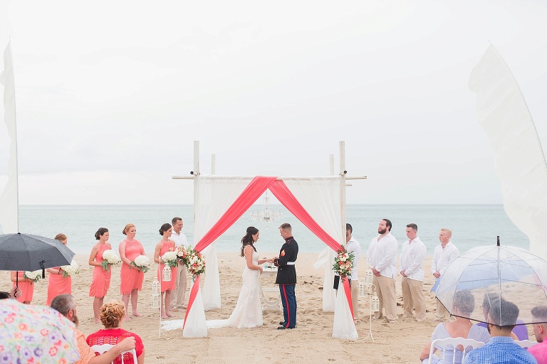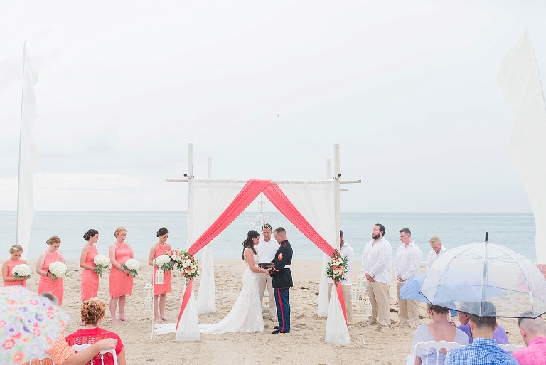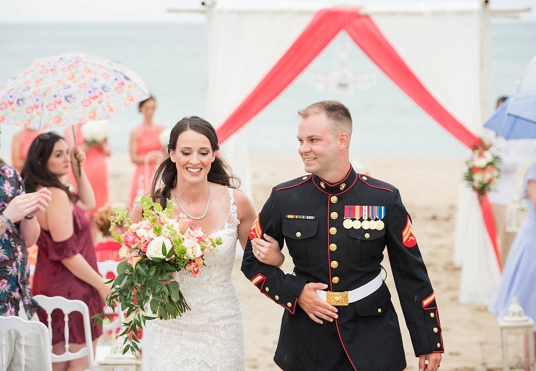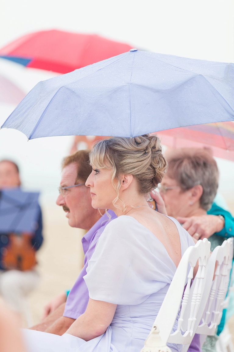 The day started out with 40% chance of rain, then 20%, then 0%.. but RIGHT BEFORE the ceremony, it started to sprinkle. It picked up a little more, but this couple was determined to have their beautiful beach ceremony, and with the team effort from all of us vendors and their amazing friends and family, it HAPPENED. They were married in the rain, and it was SO beautiful.