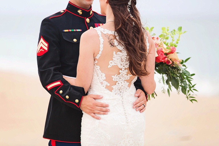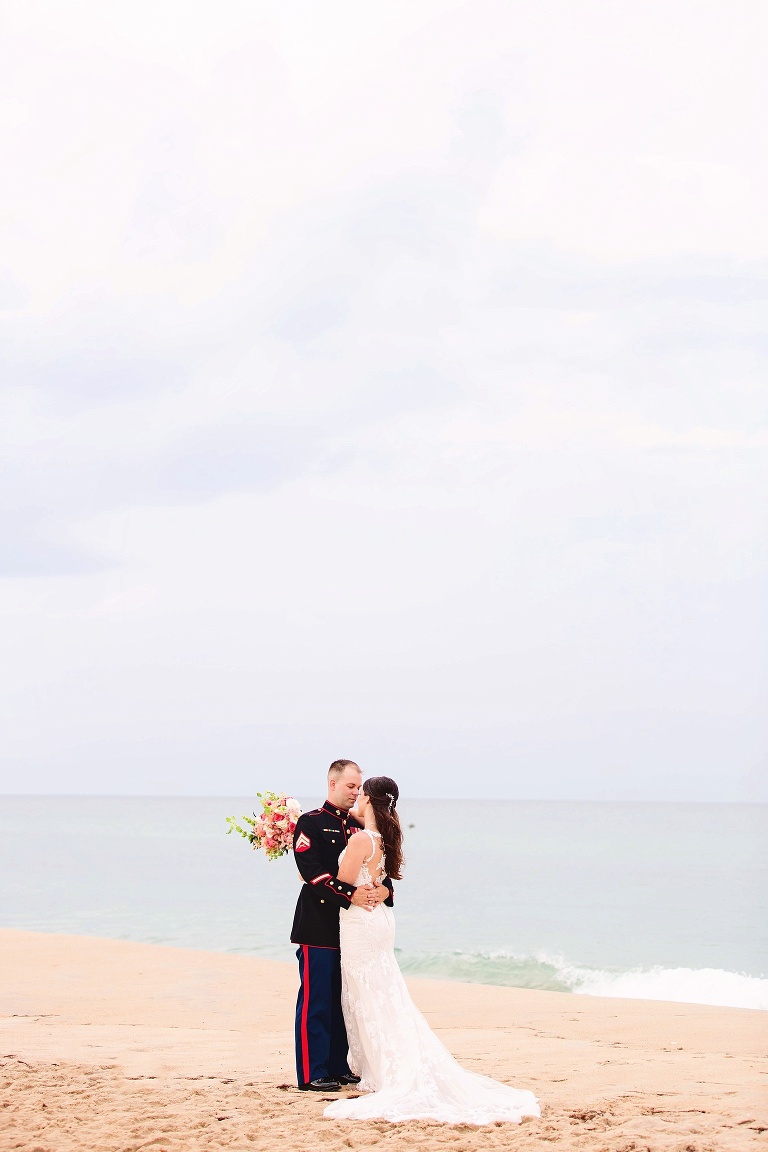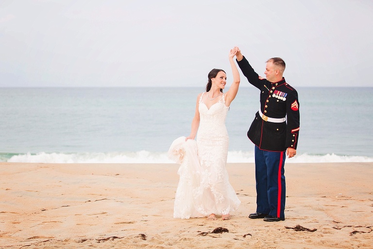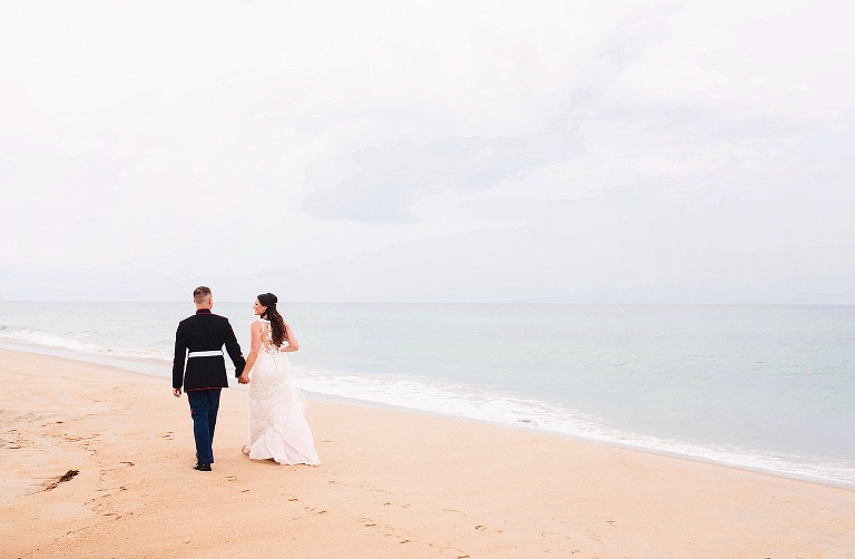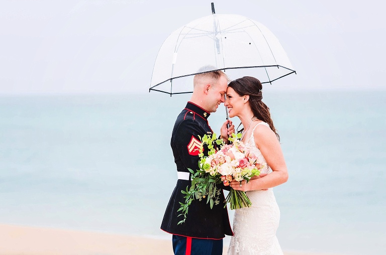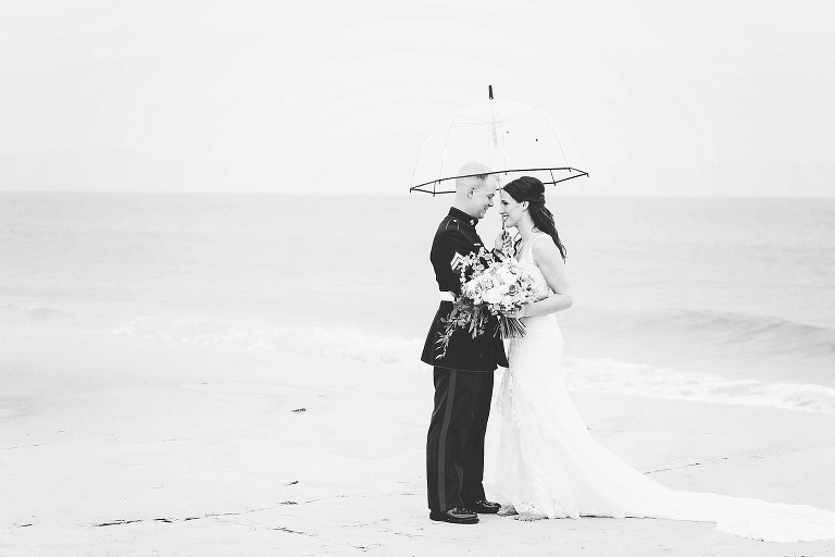 After the ceremony, it poured. We decided to do a rain photo once it calmed down some, and then head to the reception for covered photos. BUT then it suddenly stopped. So we hopped out of the car and went to the beach for portraits.
