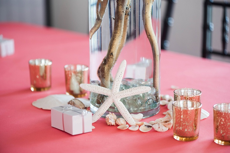 Bridesmaid’s flowers and center pieces: Linda Bradley from Barefoot Beach rentals